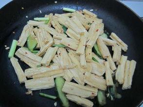 5. 加入腐竹:将泡发好的腐竹放入锅中,与瓜类一起翻炒。